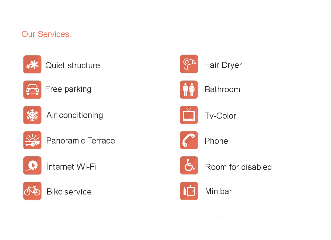 The rooms are very comfortable, modern, bright and tastefully furnished, with private bathroom, shower, minibar, air conditioning; every room has private terrace or private balcony, for relaxing moments, drinking or reading a book.